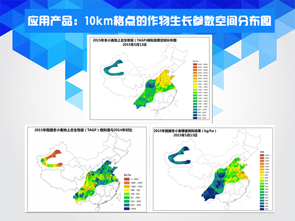 經過3年多的努力,國家氣象中心實現了作物模型的全面業務化應用,其中包括冬小麥干熱風災害影響定量評估、華北夏玉米干旱解除預評估、作物產量動態和定量氣象預報等;同時,玉米、水稻、小麥葉面積指數、生物量和穗重的逐周模擬產品也在國家氣象中心業務網站上定期發布。